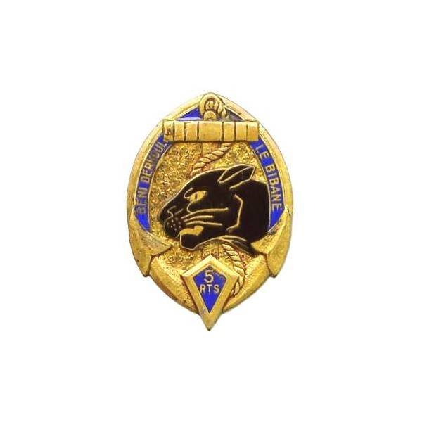5° Régiment de Tirailleurs Sénégalais , tête de panthère d'émail noir , "BENI DERKOUL LE BIBANE", attache ressoudée